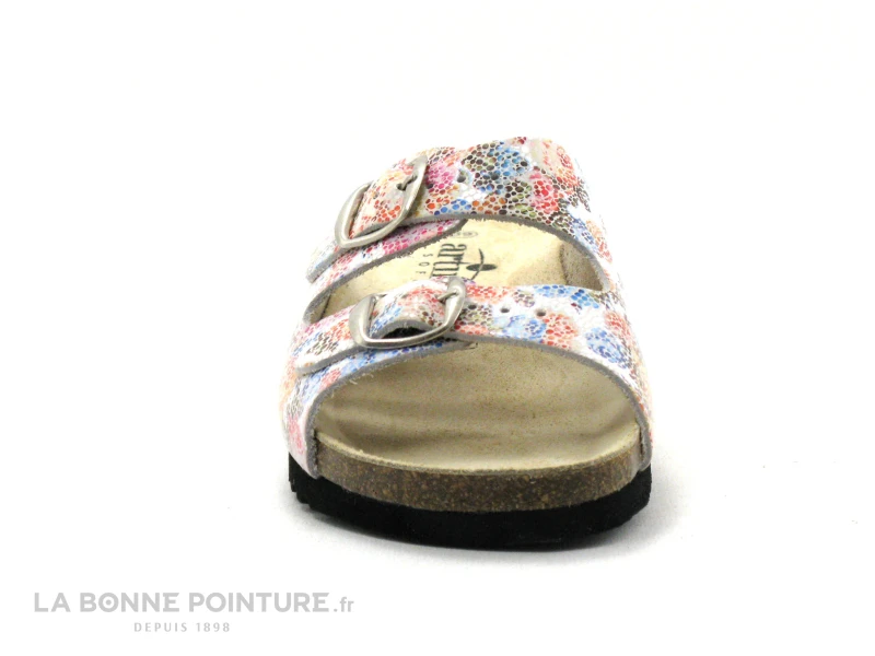 Un imprimé fantaisie pour ces jolies mules femme tout en cuir Artika Soft Basque en cuir multicolore !