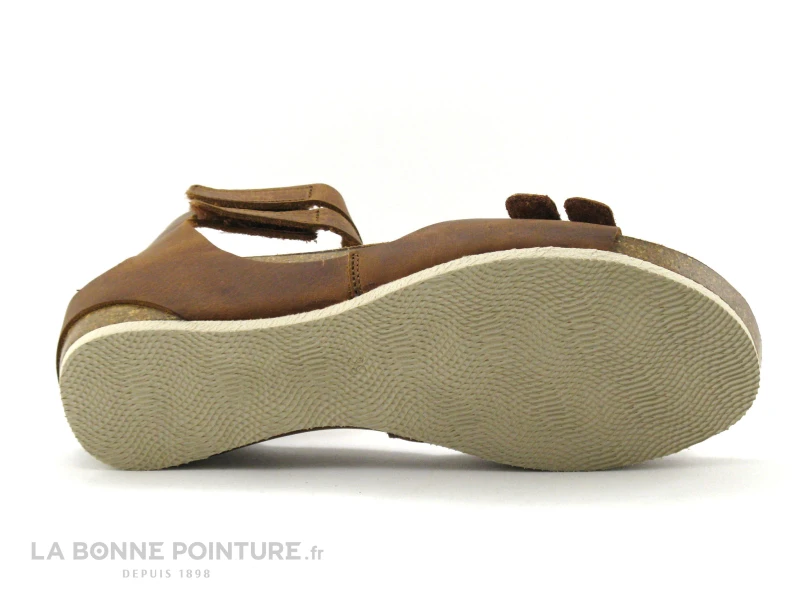 Ce joli nu-pied montant est composé d’une bande de cuir gras naturel marron qui recouvre la semelle extérieure et traverse l’avant du pied.