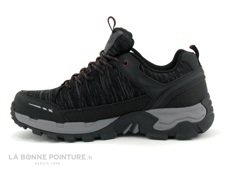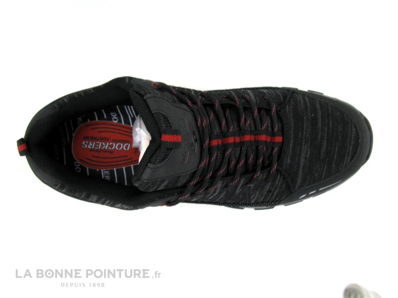 Ces chaussures OUTDOOR Dockers by Gerli 47BZ007 poids plume et résistante à la pénétration de l’eau sont réalisés en textile et matières synthétiques noir, rouge et de gris.