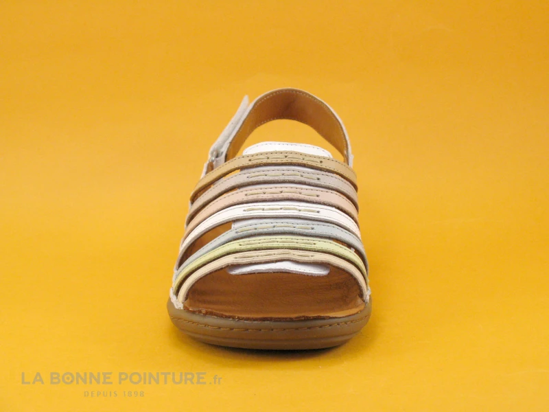 La bride arrière possède un velcro afin de fermer facilement la sandale multicolore Femme Karyoka Rose.