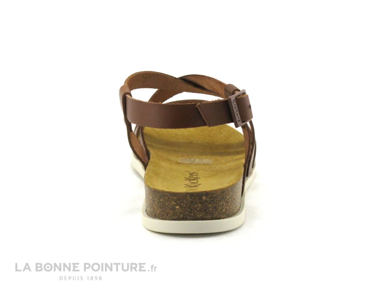Cette belle sandale Femme Kickers Kick Alice est en cuir lisse marron clair, harmonieusement associé à une semelle liège.