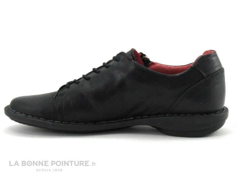 On note que le tour de cheville et la semelle sont matelassés, pour un meilleur confort dans le derbi cuir noir Femme Morans Guillac.