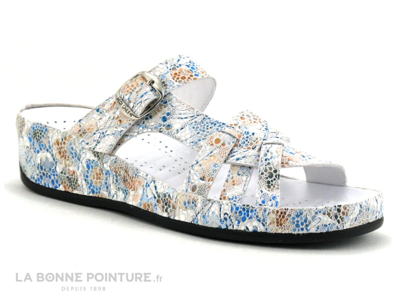 Avec leur semelle emboitante et leur cuir imprimé, voici de belles mules Femme avec bride réglable Pedi Girl Xant !