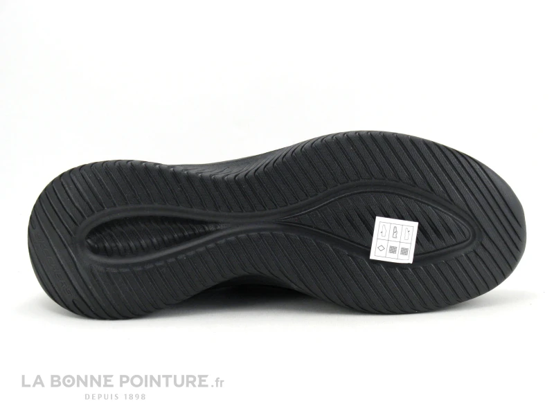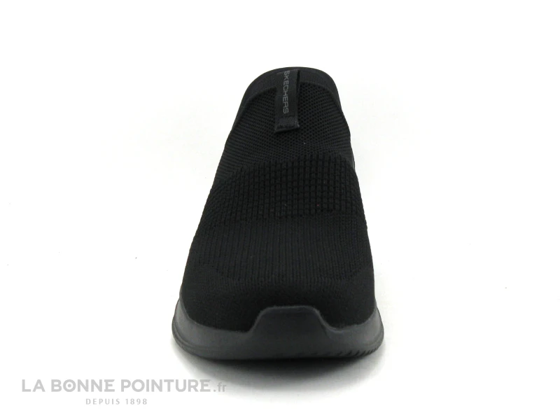 Cette basket sans lacet et vegan Skechers 232450 Ultra Flex Smooth step est en maille stretch noire.